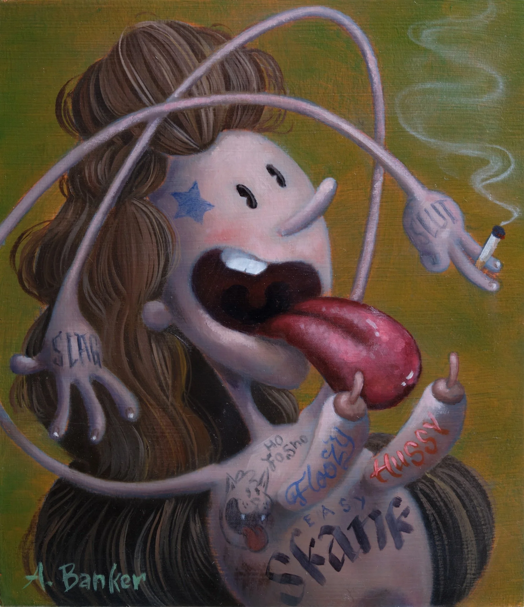 AMANDA BANKERBorn 1979Lives and works in Albuquerque, NMBio Statement CV Shows Slut Study2025 | oil on panel | 7 x 6 inches | INQUIRE