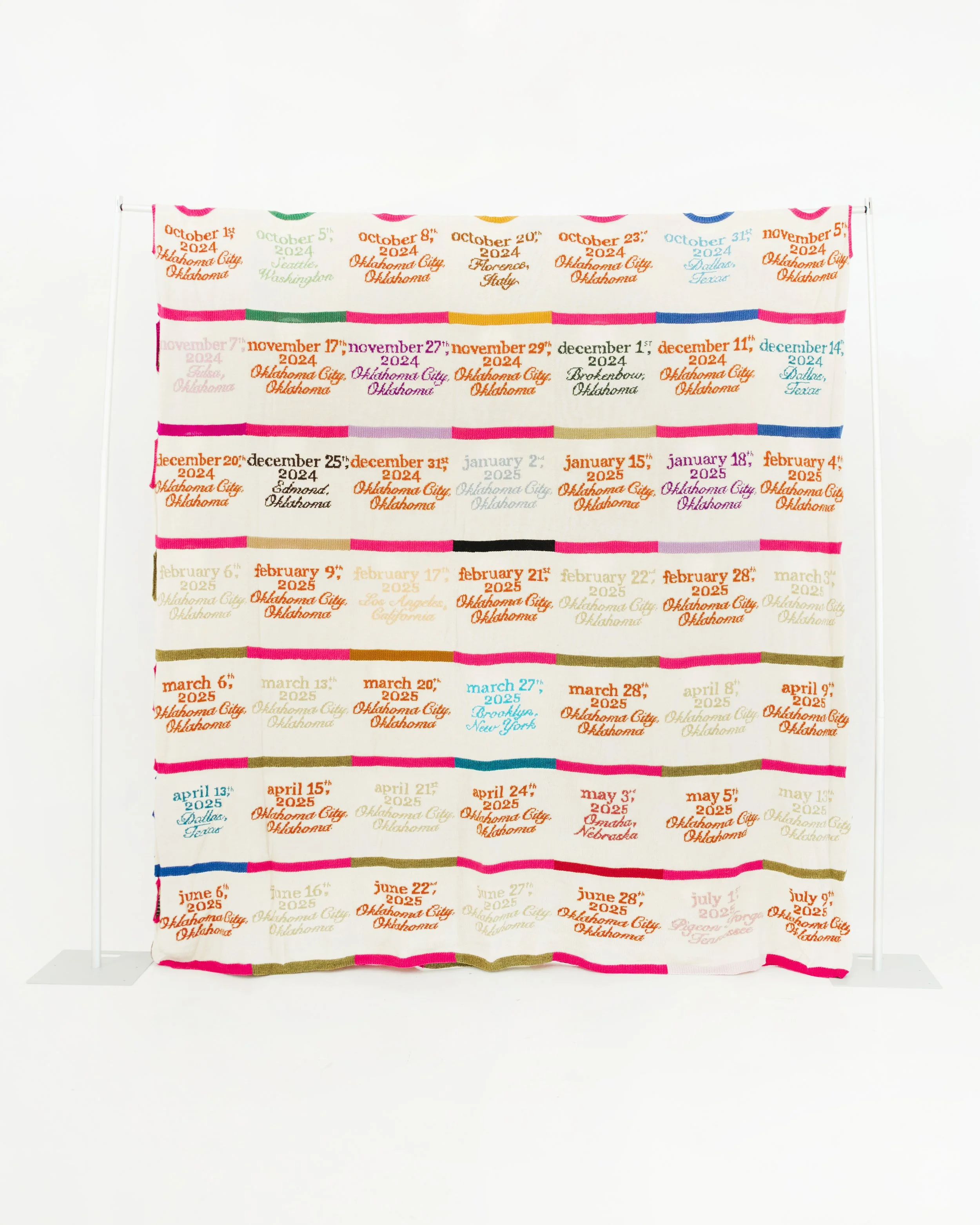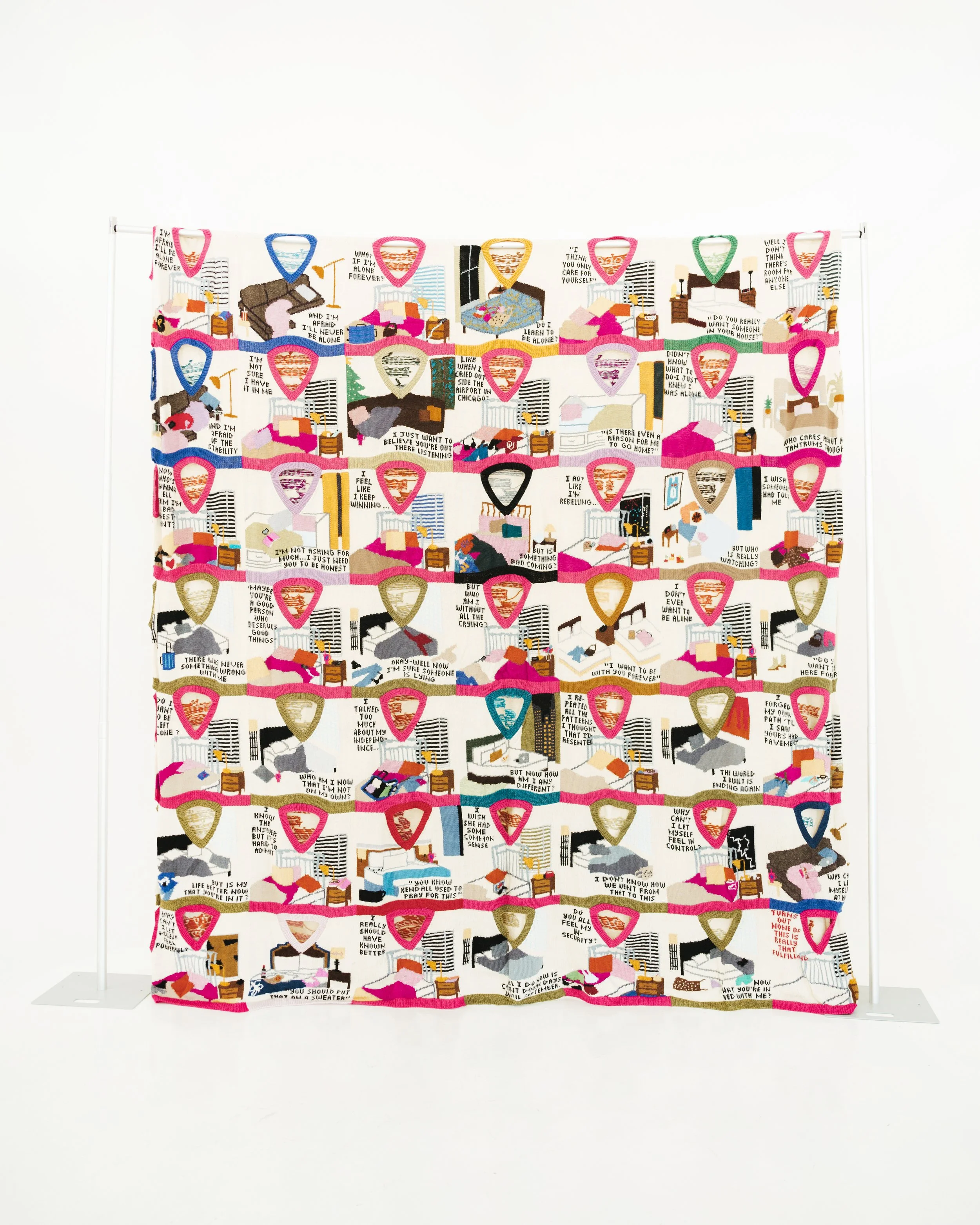 KENDALL ROSSBorn in 1999Lives and works in Oklahoma City, OklahomaStatement CV Catalogue Slide 1 Slide 1 (current slide) Slide 2 Slide 2 (current slide) In Bed With Me2025Hand-knit wool | 112 x 115 inchesINQUIRE