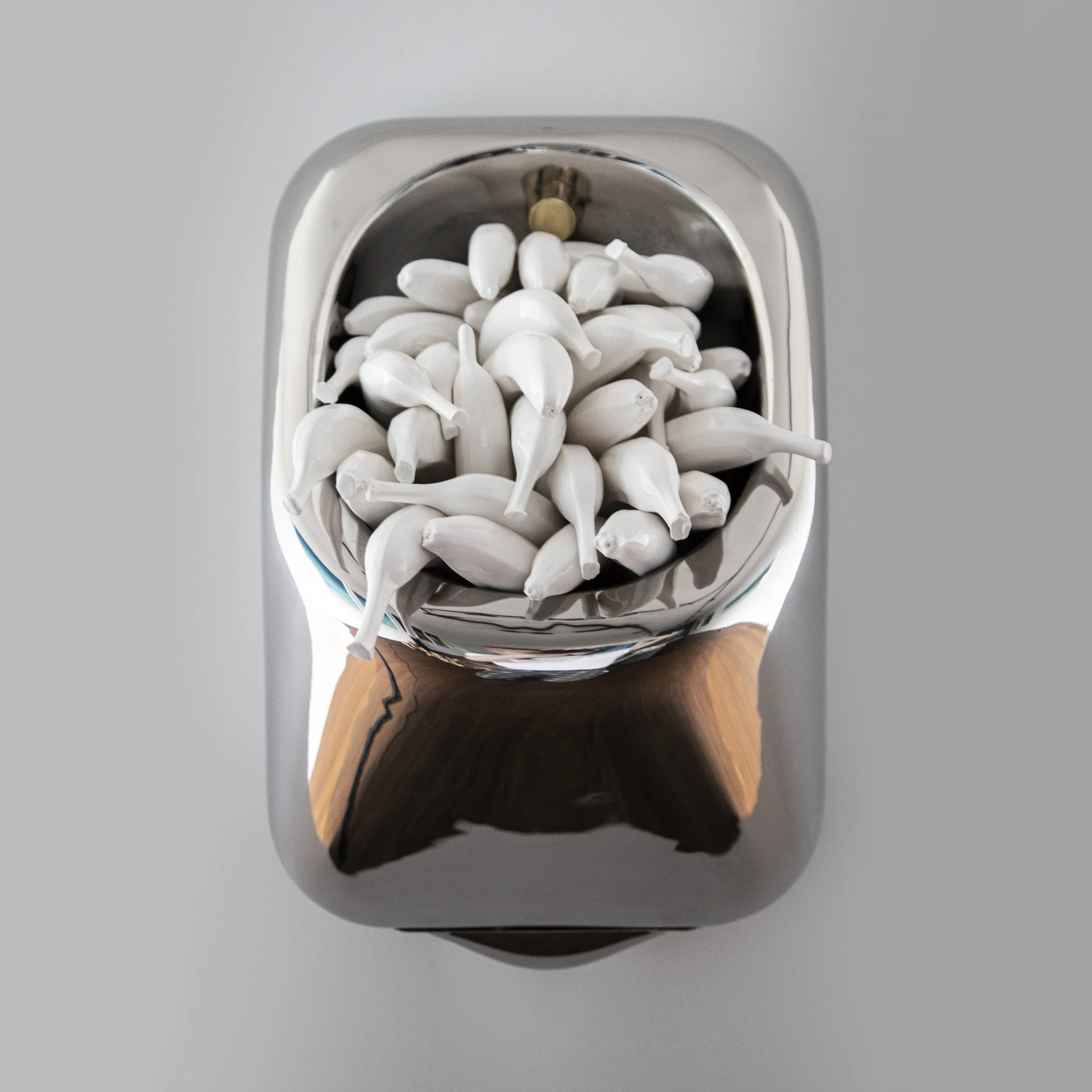 OLIVER CAINLives and works in New ZealandBio Statement CV Slide 1 Slide 1 (current slide) Slide 2 Slide 2 (current slide) Slide 3 Slide 3 (current slide) Fruit Bowl III, 2021polished stainless steel urinal, ceramic15 x 24 x 13.5 inchesINQUIRE